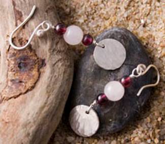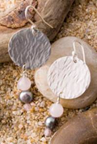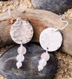 Code No. Se7 Description Sterling silver hammered disc earring with rose quartz