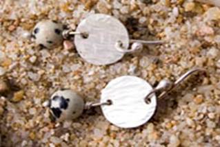 hammered disc earring with dalmation jasper. 10mm disc