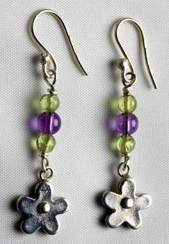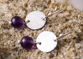 Code No. Se6b Description Sterling silver hammered disc earring with amethyst. 10mm disc size. Price: £13.50 |