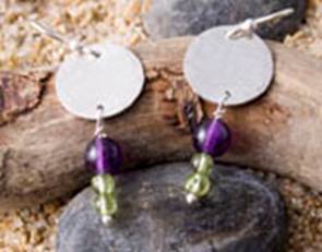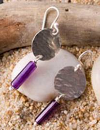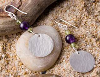 Code No. Se10 Description Sterling silver hammered disc earring with amethyst