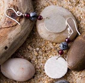 Code No. Se9 Description Sterling silver hammered disc earring with amethyst