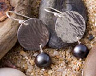 Code No. Se10b Description Sterling silver hammered disc earring with dark grey