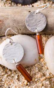 Code No. Se8a Description Sterling silver hammered disc earring with cornelian