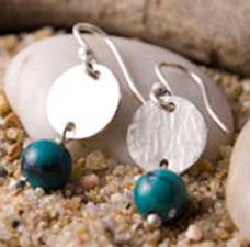 Code No. Se6 Description Sterling silver hammered disc earring with turquoise. 10mm disc size. Price: £13.50 |