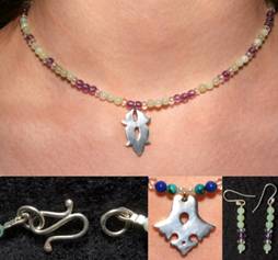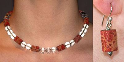 Description Sponge coral, rock crystal & sterling silver. Necklace code no. Sn35 Price: £40.00 16inches Earring code no. Se35 Price: £12.00 |